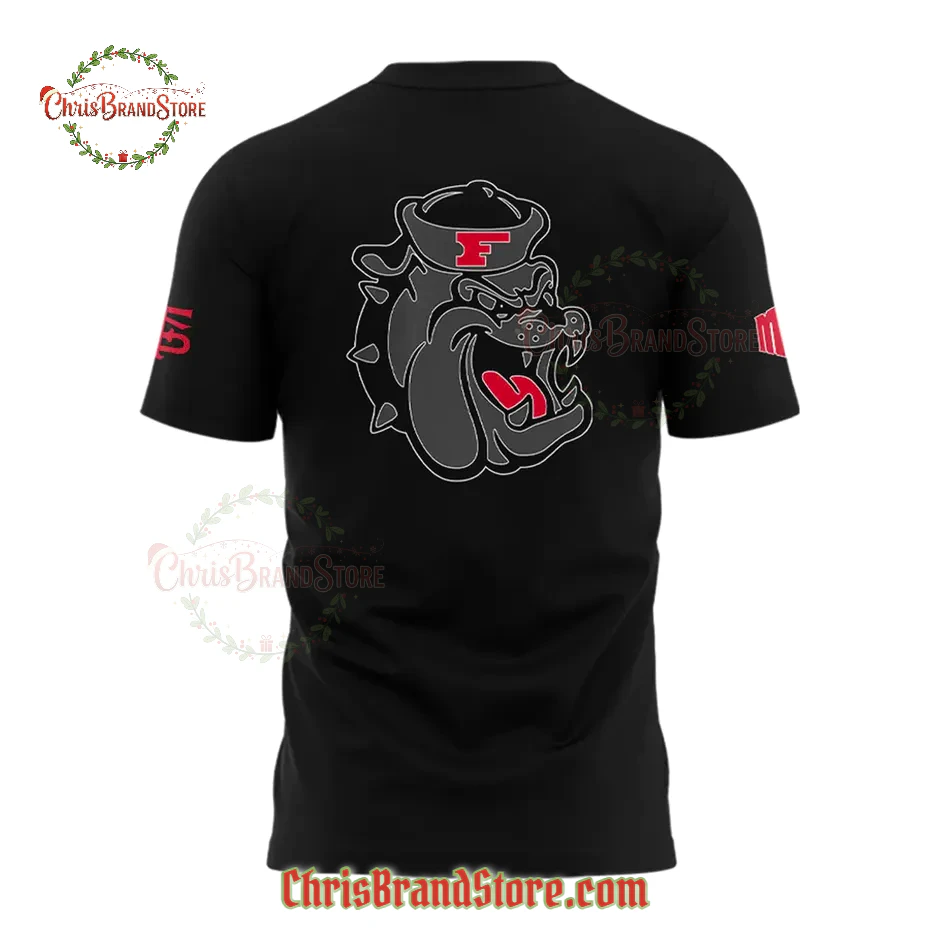 Your eye lands first on the bold “FRESNO STATE” emblazoned across the chest in that powerful, slightly condensed red lettering. It’s direct, confident, and leaves no doubt where your loyalties lie. Right below it, the iconic “V” in a vibrant green, sharply outlined in red, anchors the front design with a classic symbol of victory that instantly resonates. Then you catch the subtle yet strong details on the sleeves—a clean “W” on one and an “FS” on the other. These aren’t flashy; they’re whispers of allegiance, details that truly elevate the design without overpowering it. Flip it around, and you’re met with the star of the show: that menacing Bulldog head graphic. Its snarling profile, the sharp lines, the bold white outline making it leap off the black, and that fierce red tongue are all perfectly rendered. And honestly, the small “F” on its hat is just the perfect touch, tying it all back to the foundation of the Bulldogs. Every stitch, every line, every color choice here projects confidence and fierce loyalty, a truly championship-caliber design.