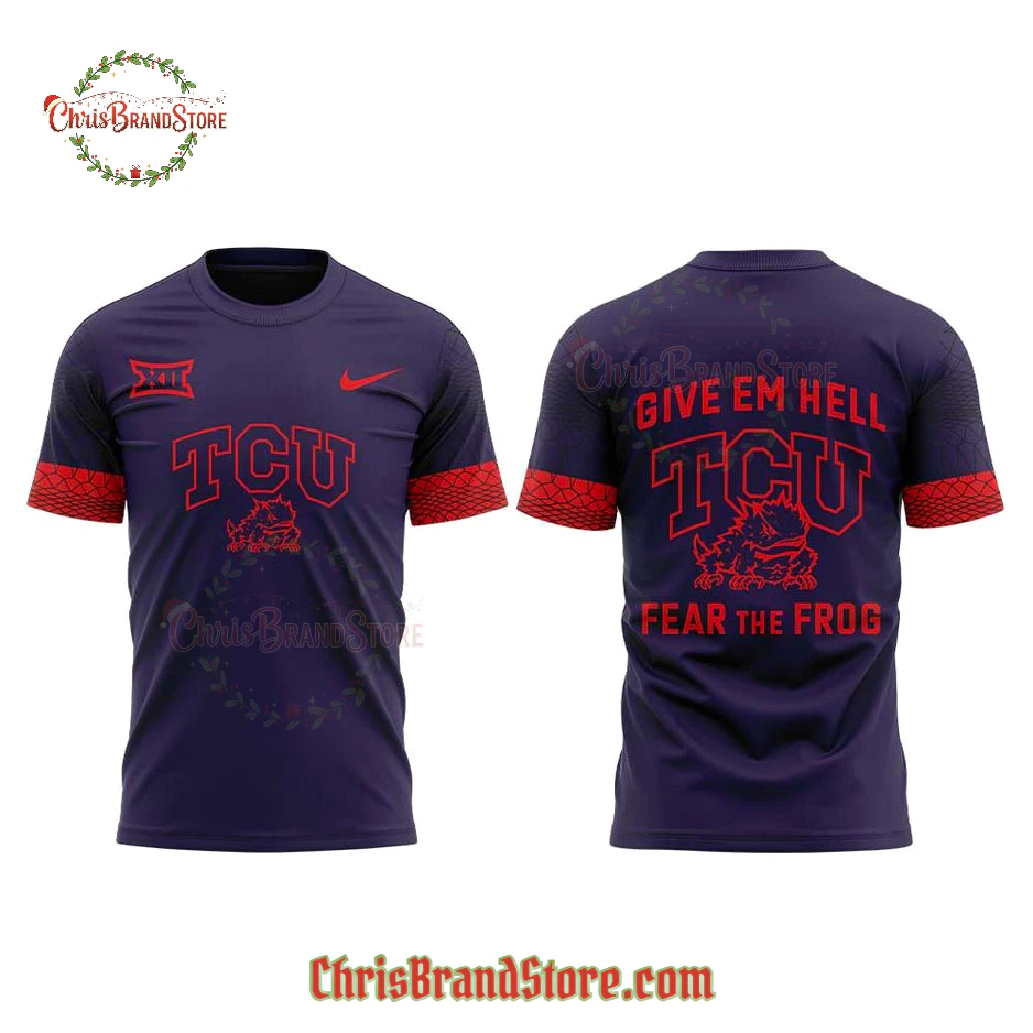 2025 TCU Give em Hell Fear the Frog Shirt, Long Sleeve Shirt, Fleece Hoodie, Zip Hoodie