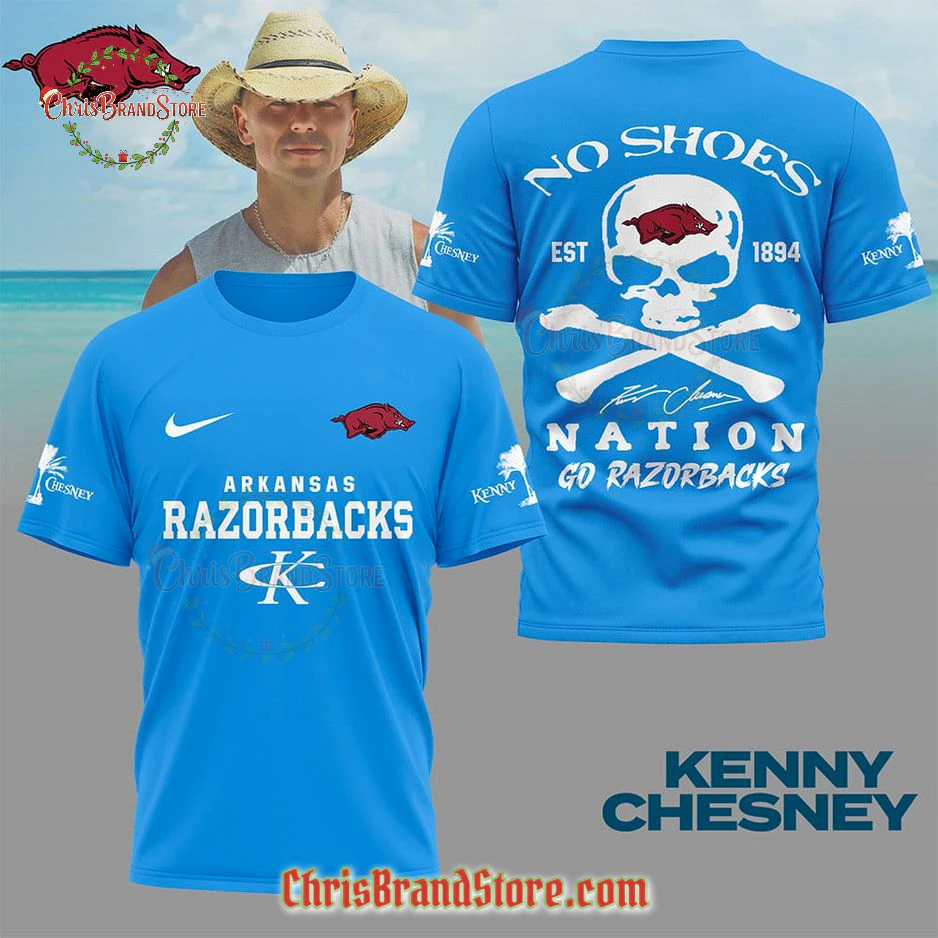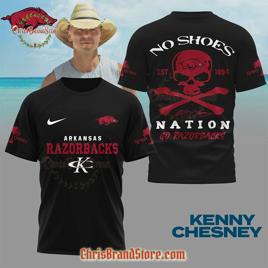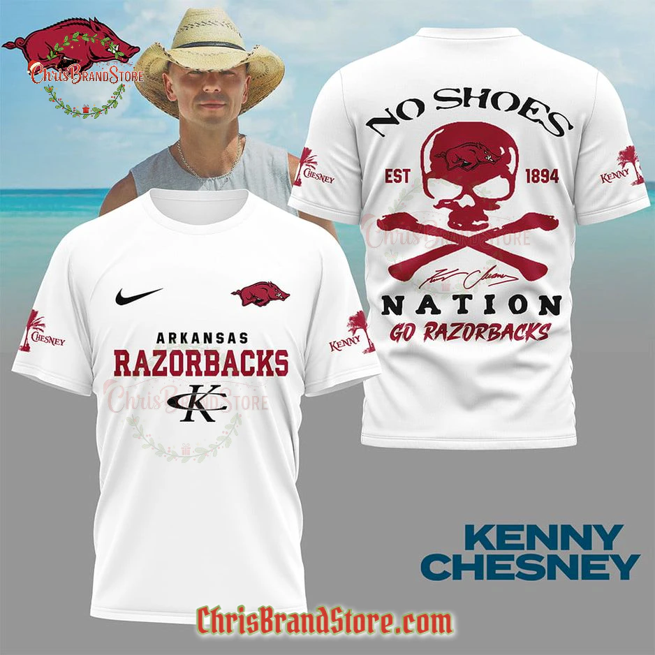 Arkansas Razorbacks x Kenny Chesney “No Shoes Nation” Woo Pig Sooie T-Shirt, Long Sleeve Shirt, Fleece Hoodie, Zip Hoodie