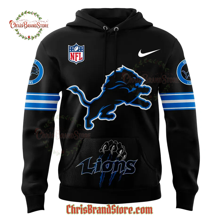 Your eye lands first on that iconic leaping lion, commanding the center of the chest. It’s outlined with a crisp blue, making it pop with an almost three-dimensional effect against the black. Then you catch the bold blue stripes running across the sleeves. They’re not just decorative; they bring a dynamic sense of motion and speed, echoing the swiftness of the players on the field. Look closer at the front pouch, and you’ll notice the “Lions” text, etched with what look like claw marks, giving it that raw, untamed edge. It’s a detail that could easily be missed but adds so much character. Even the texture of the fabric, you can tell it’s substantial and smooth, designed to keep that crisp look. The overall vibe projects confidence and an undeniable fan identity that’s both modern and deeply rooted in tradition.