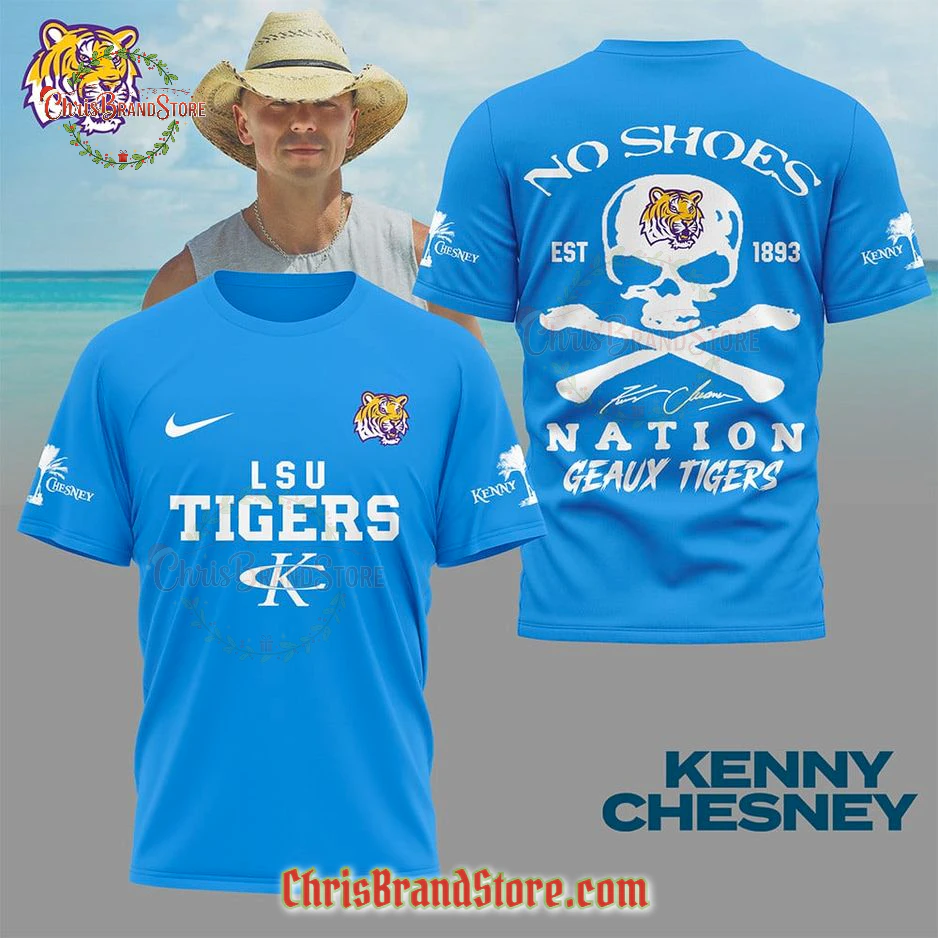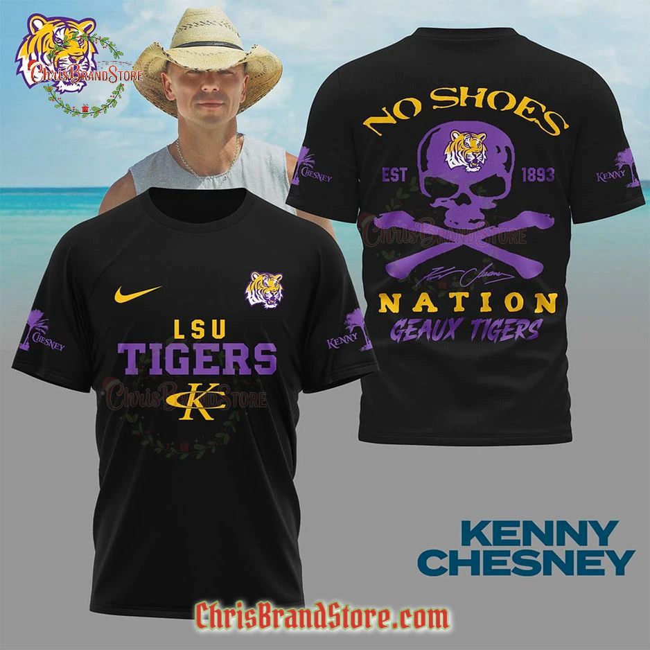 LSU Tigers x Kenny Chesney “No Shoes Nation” Geaux Tigers Fan 2025 New T-Shirt, Long Sleeve Shirt, Fleece Hoodie, Zip Hoodie