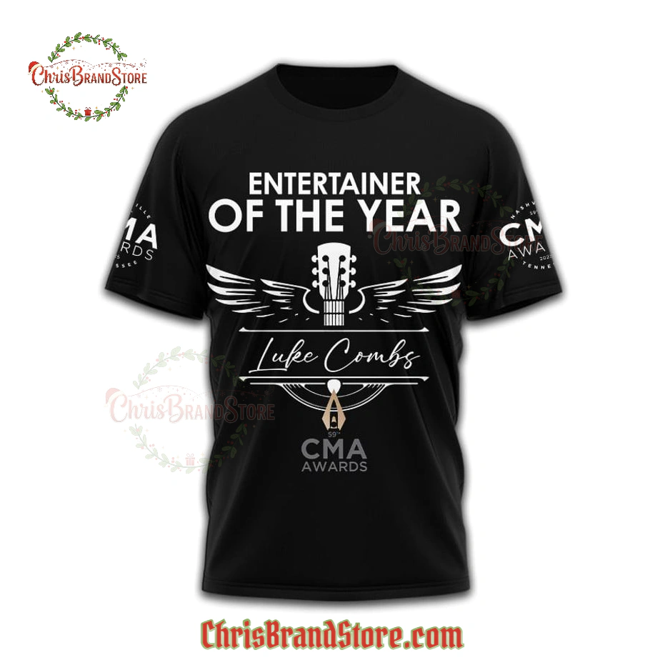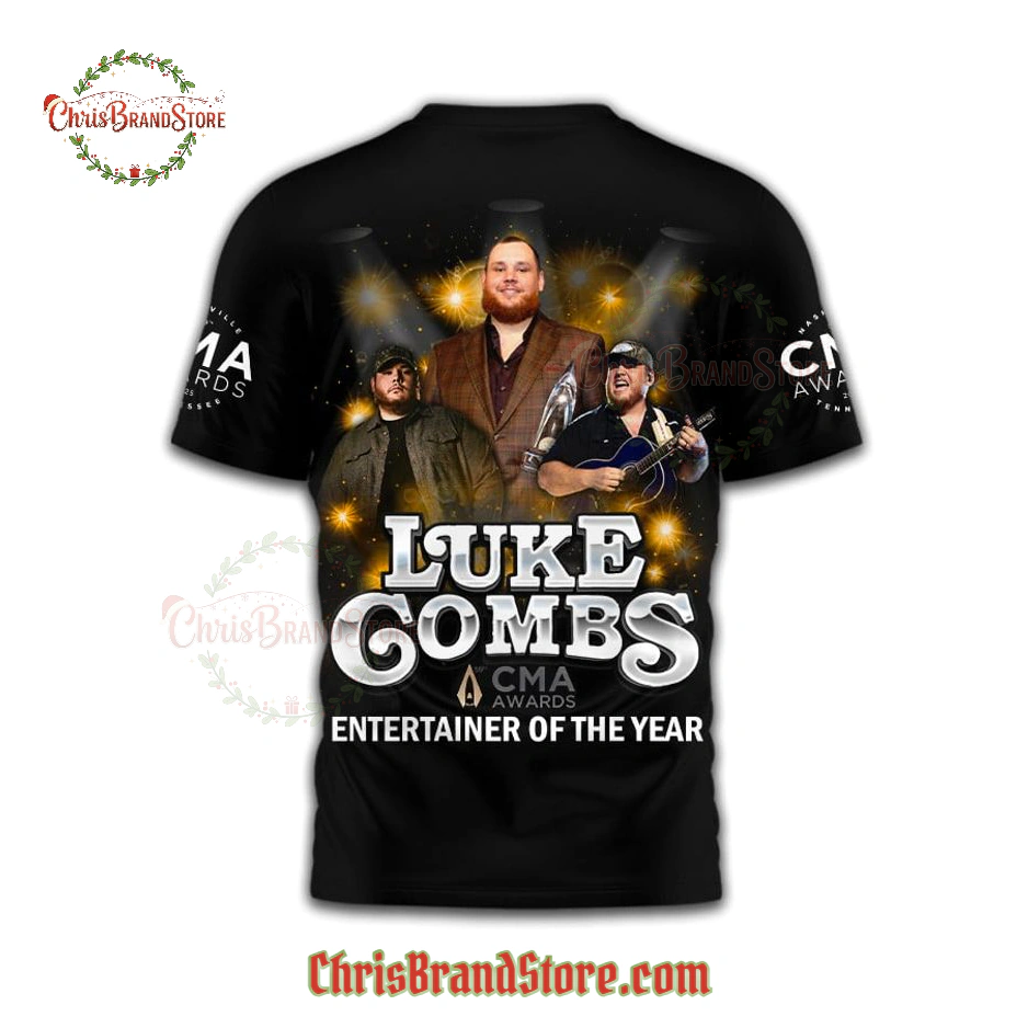 But here’s the thing, this shirt really brings it on the back too. The reverse side features a really dynamic graphic with multiple images of Luke himself, almost like he’s on stage, surrounded by spotlights. The “LUKE COMBS” text on the back is done in this cool, almost metallic-looking font that really catches the light, making it stand out in a crowd. It’s bold, it’s vibrant, and it perfectly encapsulates the energy of his performances. Beneath his name, the CMA Awards Entertainer Of The Year title is repeated, ensuring everyone knows what this piece is celebrating. It’s got that soft, breathable fabric feel that means you can actually wear it all day without feeling weighed down. The quality of the print is strong, too, not flimsy like some designs you see. It feels substantial.