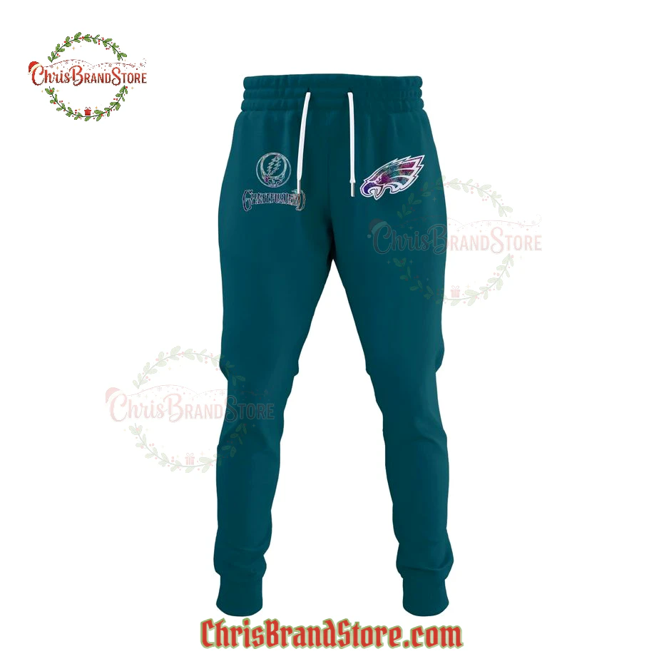 And honestly, this distinctive Grateful Dead and team fusion isn’t confined to just the hoodie. We’ve seen how this design language carries effortlessly across other pieces, like the coordinating joggers. The rich green, the stylized bird, the subtle Dead emblem – it all comes together to create a cohesive collection that’s unmistakably Philly, unmistakably Dead. The fabric, a soft, durable fleece, feels like a warm embrace.