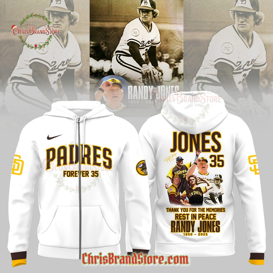 On the front, the bold “PADRES” lettering commands attention, underneath it, “FOREVER 35” anchors the design, a poignant tribute to Randy Jones’ iconic number. Then you catch the subtle details: the sleek gold stripe on the sleeve cuffs and the classic Padres “SD” logo, ensuring everyone knows exactly where your loyalties lie. But turn it around, and that’s where the real heart of the design comes through. The commanding “JONES 35” sprawls across the back, leading your gaze to a powerful, artfully arranged montage of Randy Jones himself. You see him in different eras, capturing the essence of his career, a testament to his impact on the game and the city. And that subtle signature detail? It’s a genuine touch that truly elevates this piece. Below the montage, the heartfelt “THANK YOU FOR THE MEMORIES REST IN PEACE RANDY JONES 1950 – 2025” speaks volumes, turning this design into a beautiful, lasting memorial. It’s a design that exudes championship-caliber reverence and a timeless aesthetic. And what’s fantastic is how this powerful design concept extends, allowing you to carry that same spirit across different styles.