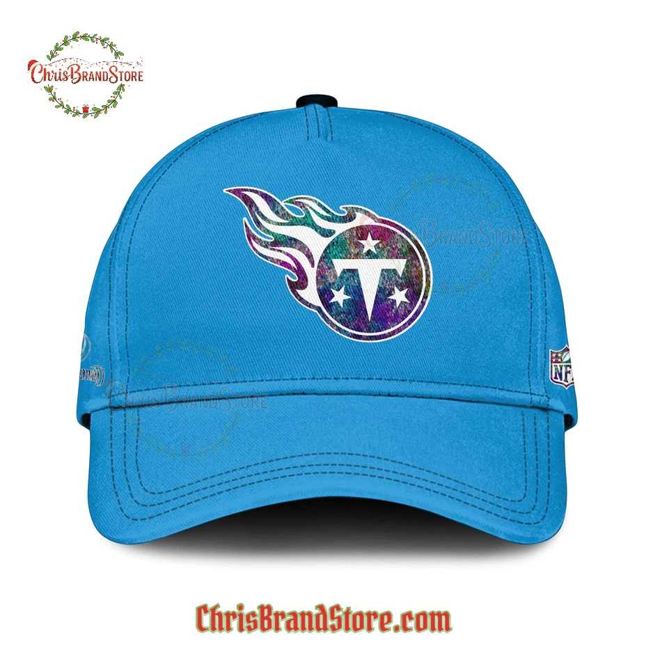 That classic light blue base isn’t just team tradition – it’s the perfect canvas for the explosion of color. It’s the color of legendary moments. Look closer and you’ll notice the subtle Grateful Dead lightning bolt graphic integrated into the side, bringing an electric current. On the back, the main event: a large, blazing Titans flame logo, given the same mesmerizing psychedelic treatment, anchored above a parade of those unmistakable Grateful Dead dancing bears, grooving across your shoulders. The ‘Grateful Dead 2025’ text above it all celebrates six decades of a cultural phenomenon, forever etched. The care taken to make the logos feel born from this tie-dye magic really elevates it, creating a cohesive narrative. This connects two powerful legacies into one bold statement, echoed across the entire collection for an unmistakably iconic look.