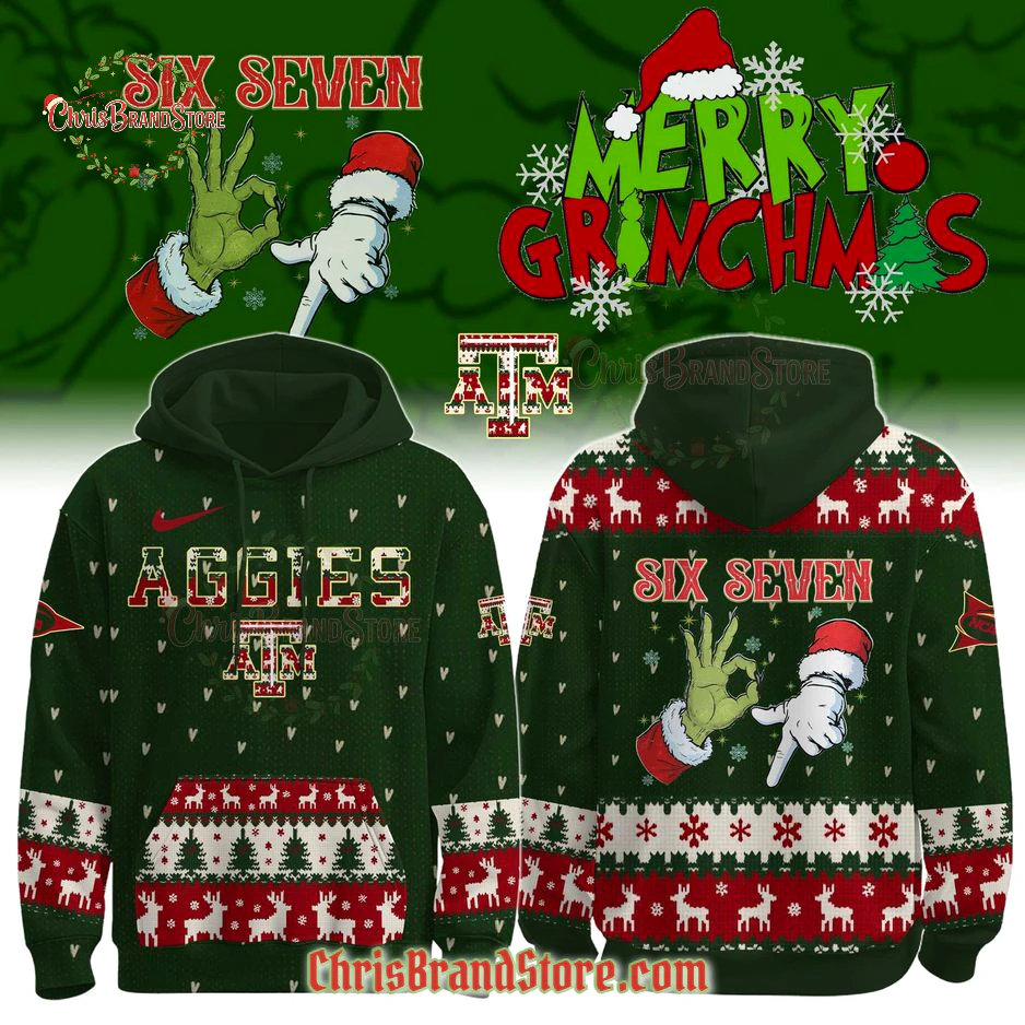 Texas A&M Aggies 2025 Six Seven Merry Grinchmas T-Shirt, Hoodie, Long Sleeve Shirt, Fleece Hoodie, Zip Hoodie